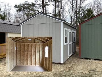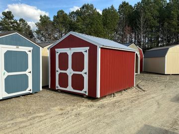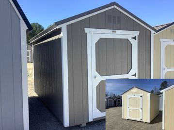 We sell metal buildings. Lofted and standard roofs. Cheaper than wood sheds, treated or tongue and groove flooring,any color,add windows. Wood framed. Warranty